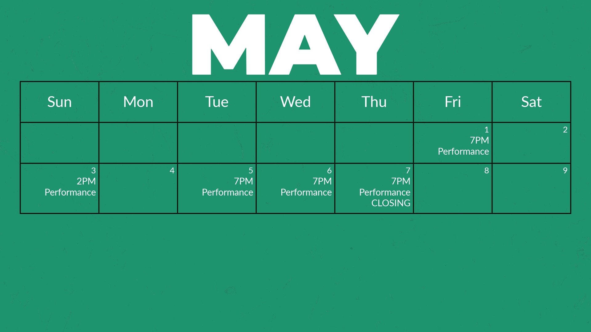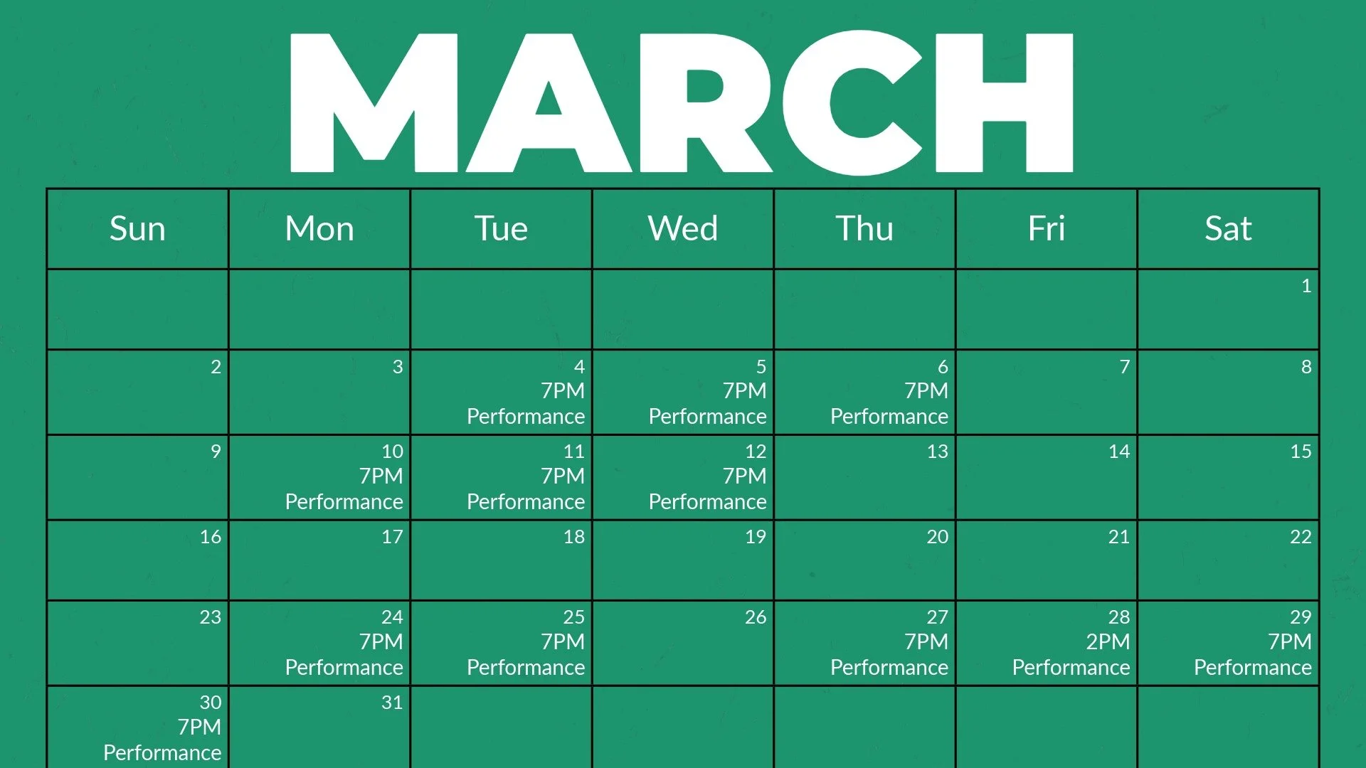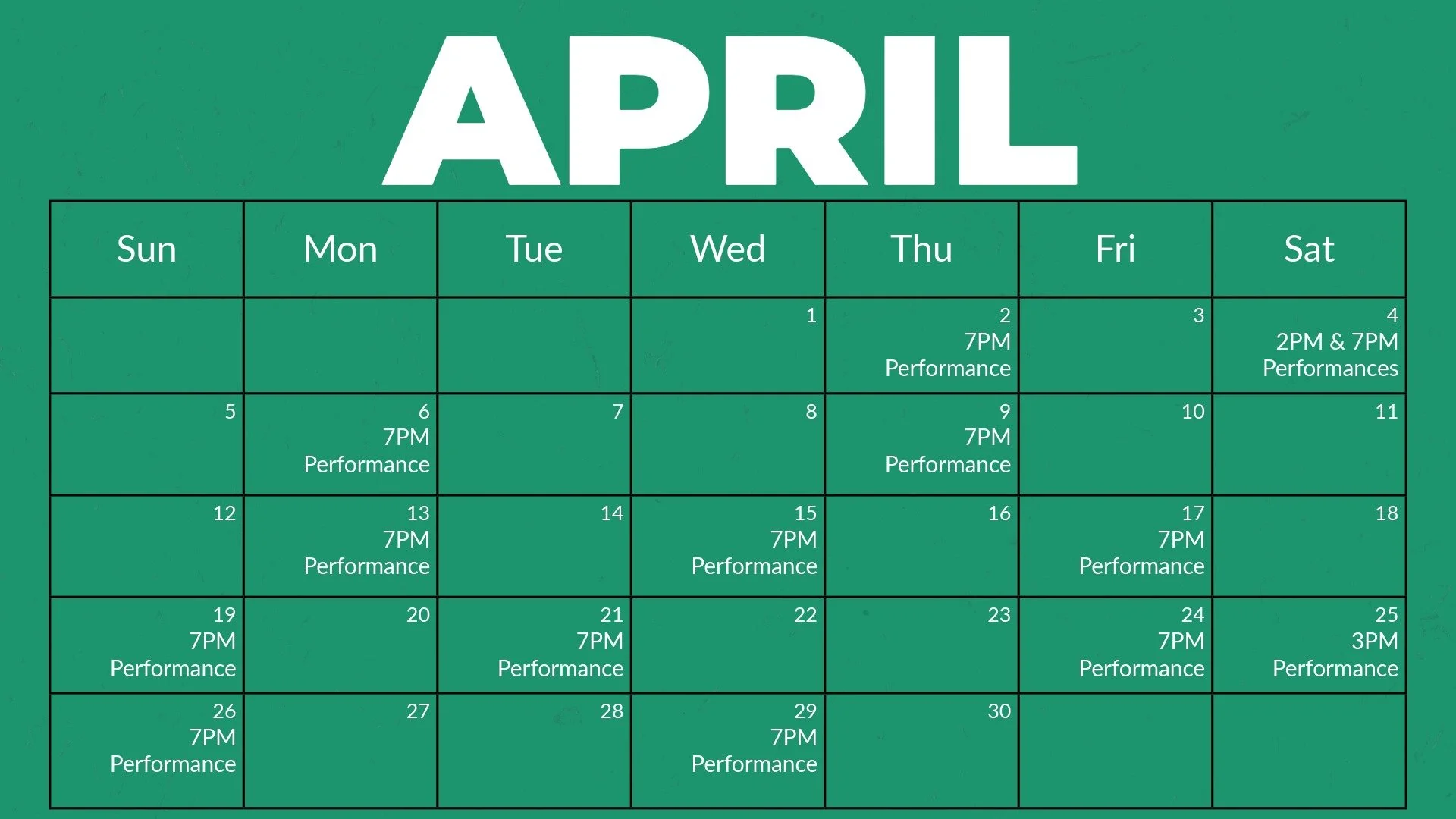 Performance dates and complimentary registration are released on a rolling basis, approximately four weeks in advance.